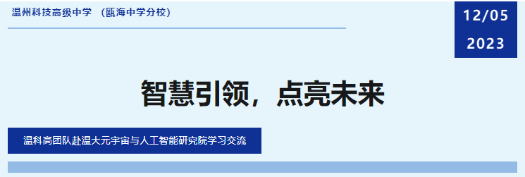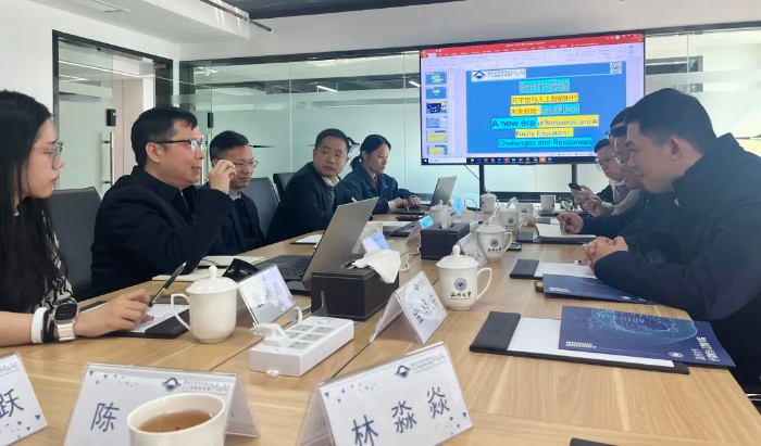 12月5日上午,温州科技高级中学校长何旦旭率人工智能科创团队赴温州大学元宇宙与人工智能研究院参观学习,并和温州大学计算机与人工智能学院党委书记全力,温州大学元宇宙与人工智能研究院院长陈昂、副院长谷雨等领导专家座谈交流。