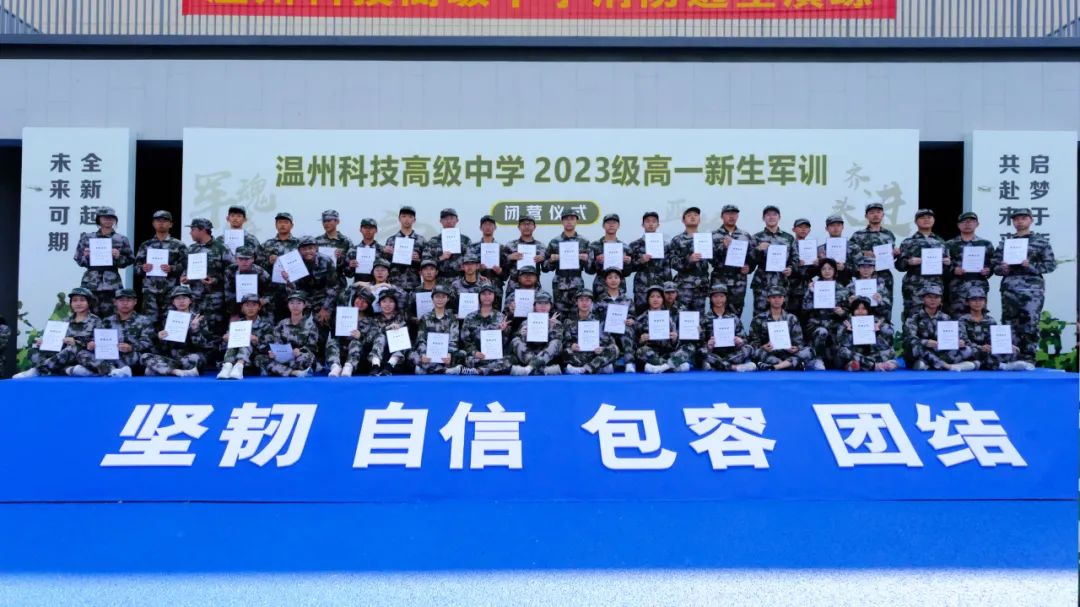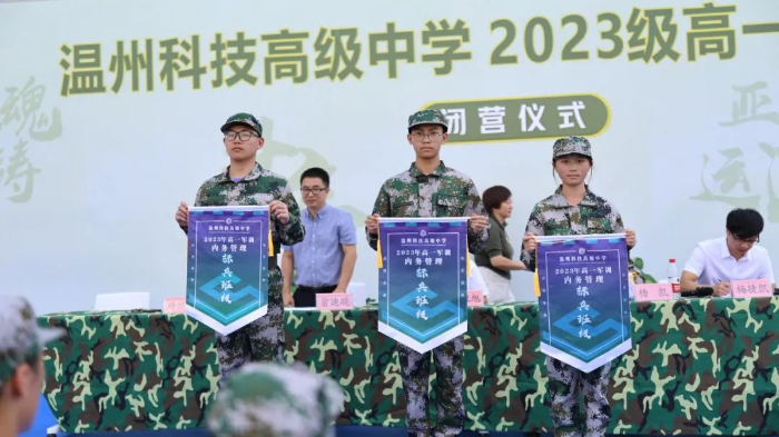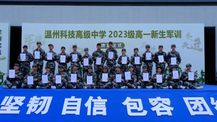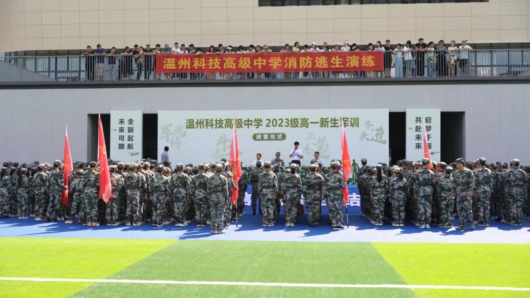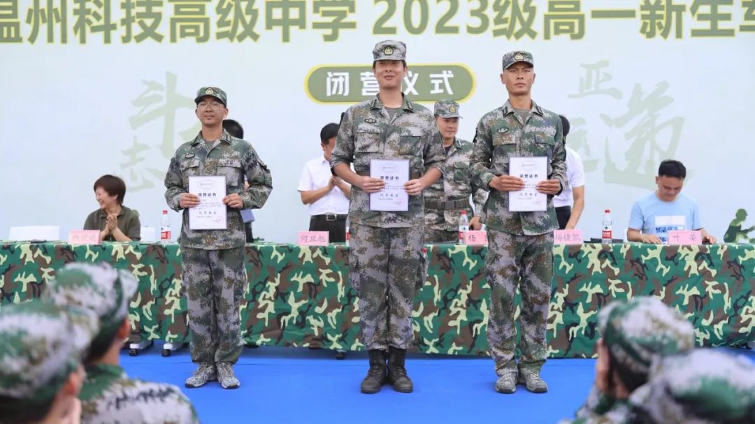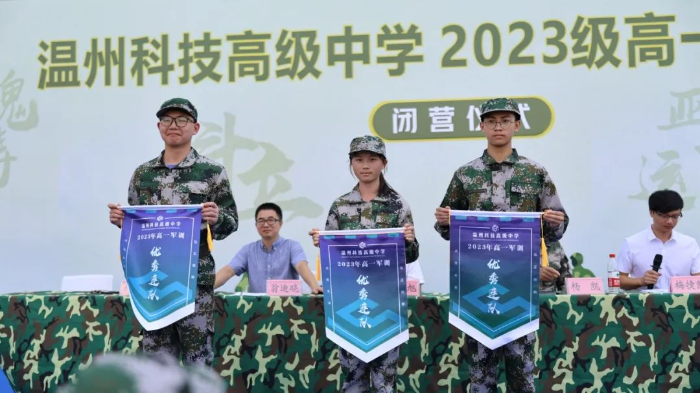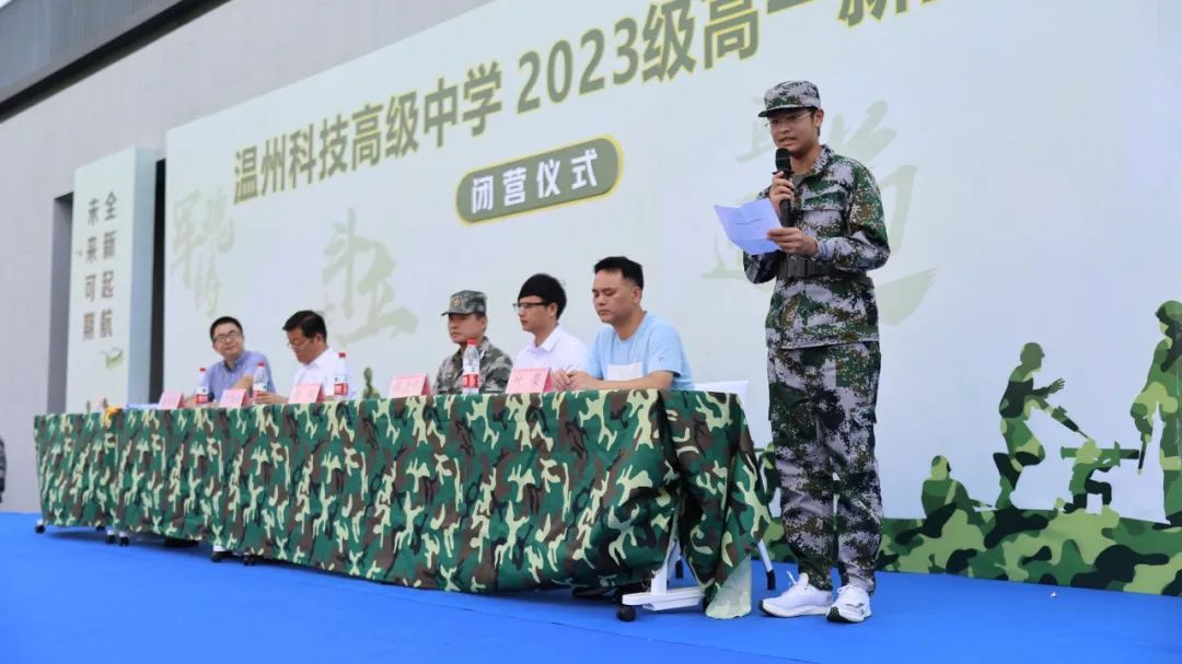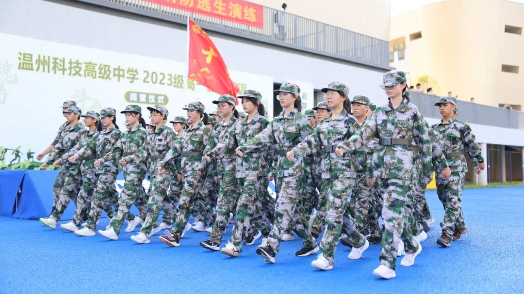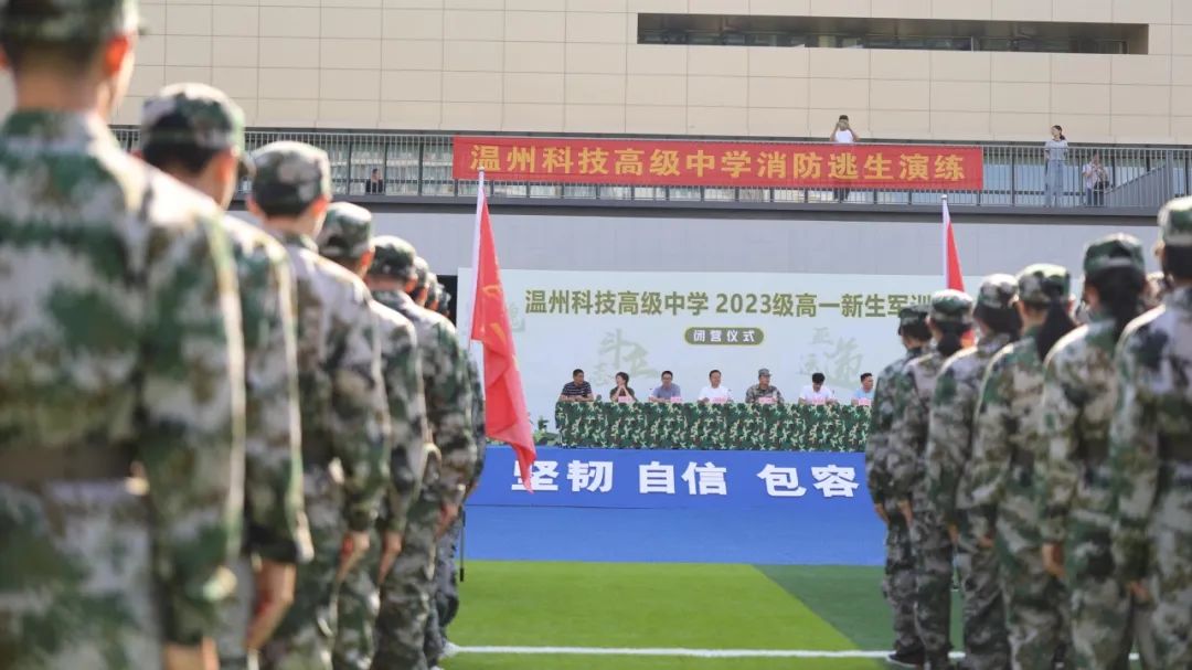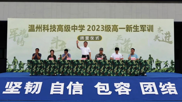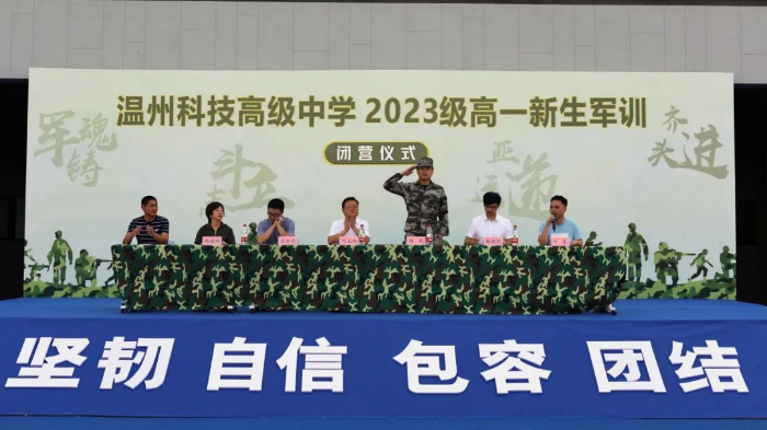 烈日长空着戎装,苍穹之下斗志昂;意气风发恰少年,英姿飒爽展锋芒。9月9日上午,温州科技高级中学2023级新生顺利完成为期一周的军训,在学校操场隆重举行军训闭营仪式。温科高何旦旭校长、翁迪晓、梅捷凯副校长等校领导,以及瓯海人武部杨凯总教官与军训各教官出席本次闭营仪式。新生以饱满激昂的热情、整齐划一的队列、威武挺拔的身姿交出了精彩的青春答卷,展现了温科高学子的蓬勃朝气与顽强拼搏的优良风貌。