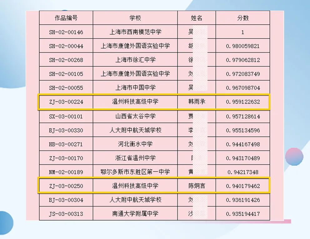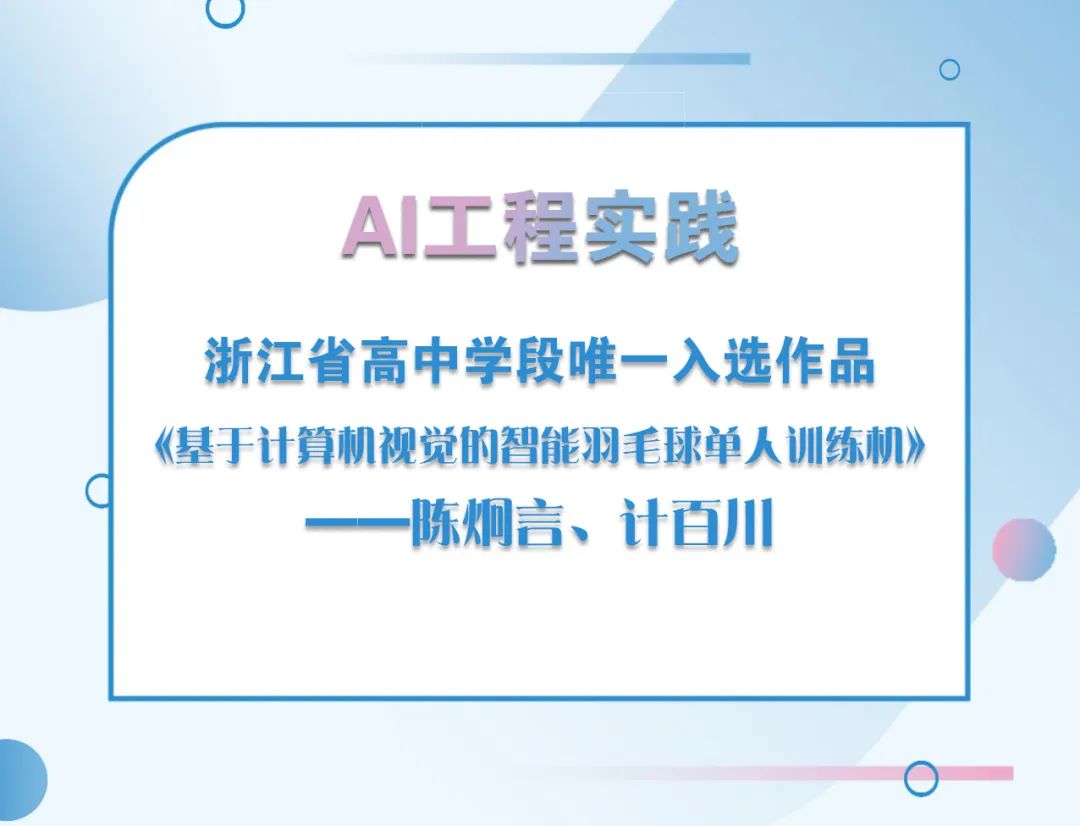 我校陈炯言、计百川两位学生的《基于计算机视觉的智能羽毛球单人训练机》是浙江省高中学段唯一入选的作品。