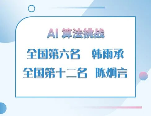 在基于数据集A进行测试得到的排行榜单中,科高学子取得全国第六和第十二名的好成绩。