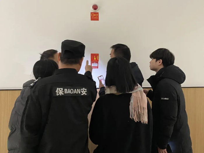 2月27日上午,在校门口、消控室、学生宿舍楼架空层举行宿管、安保人员及食堂等临聘人员的消防知识培训及灭火器、消防栓水带的使用实操演练。